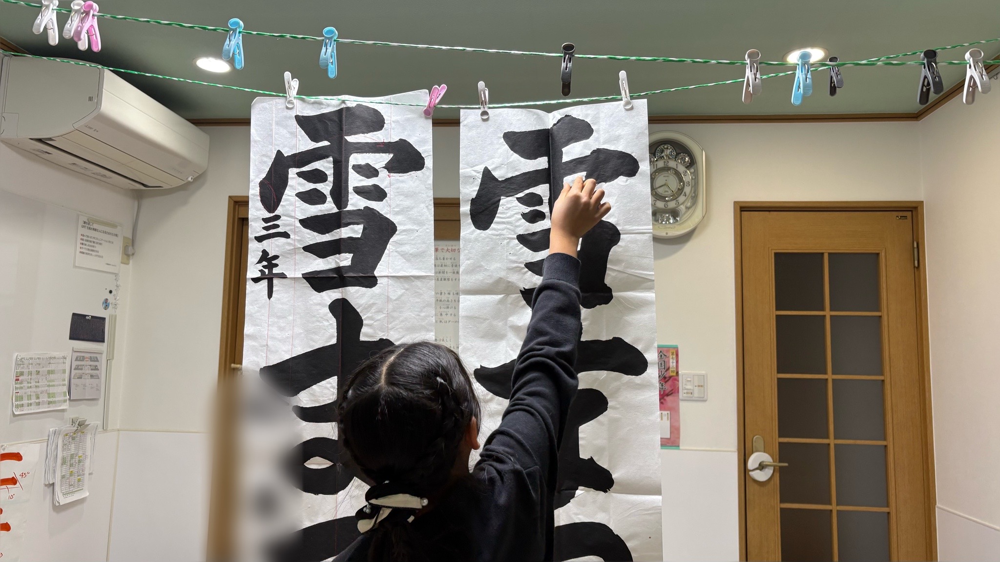 12月号書き初め課題を添削してもらうため自主練作品を持ってきてくれた小3生Kさん。