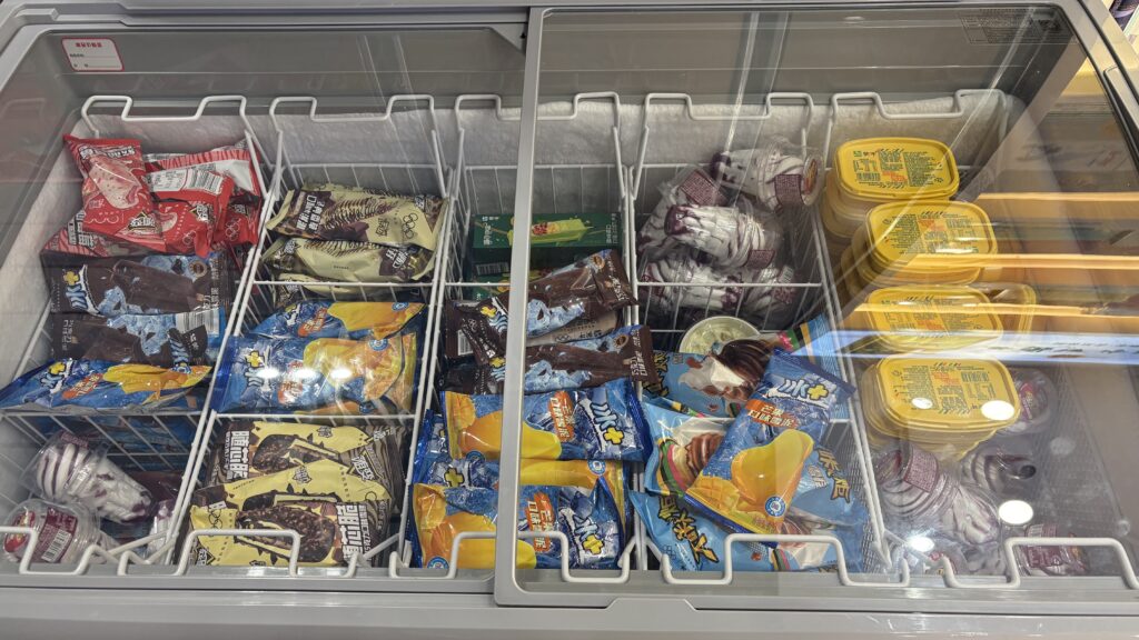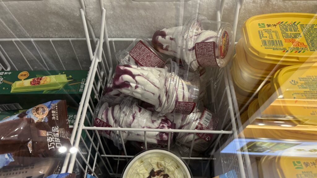 中国のアイス、カップアイスはコーンがついていないのね~。人気ないのかな~。