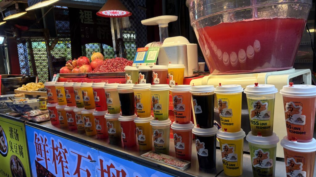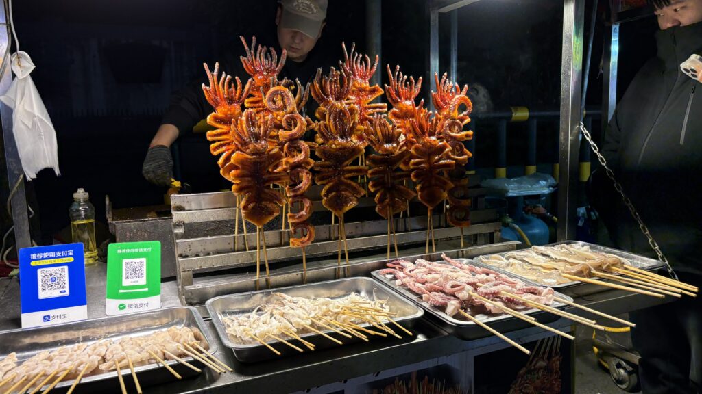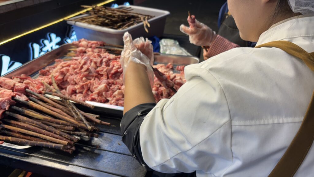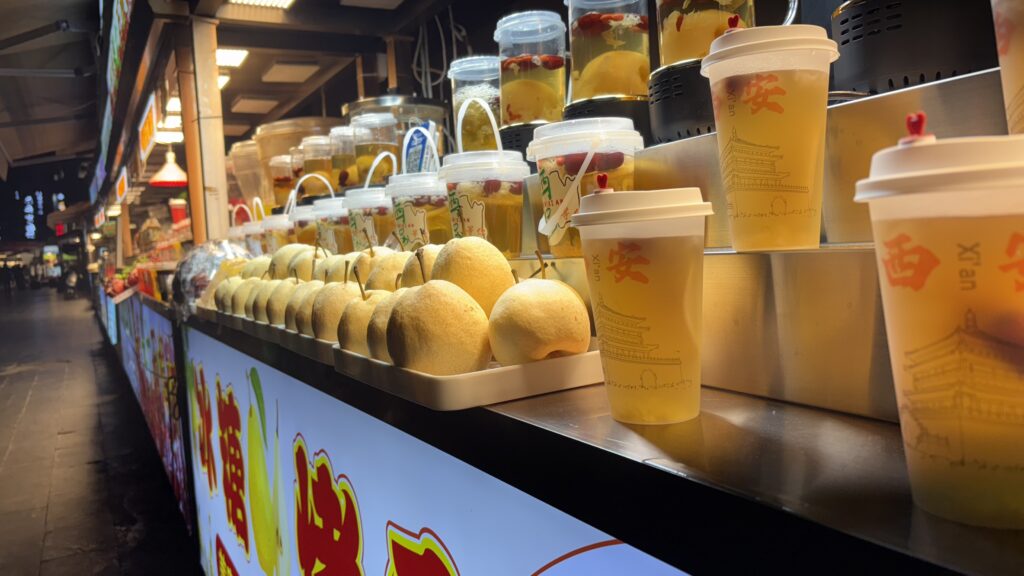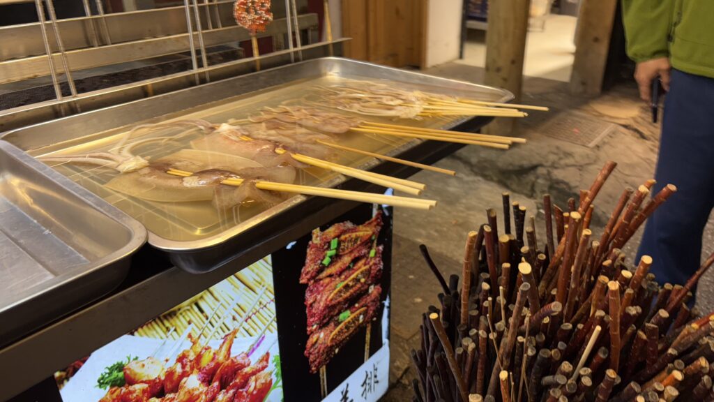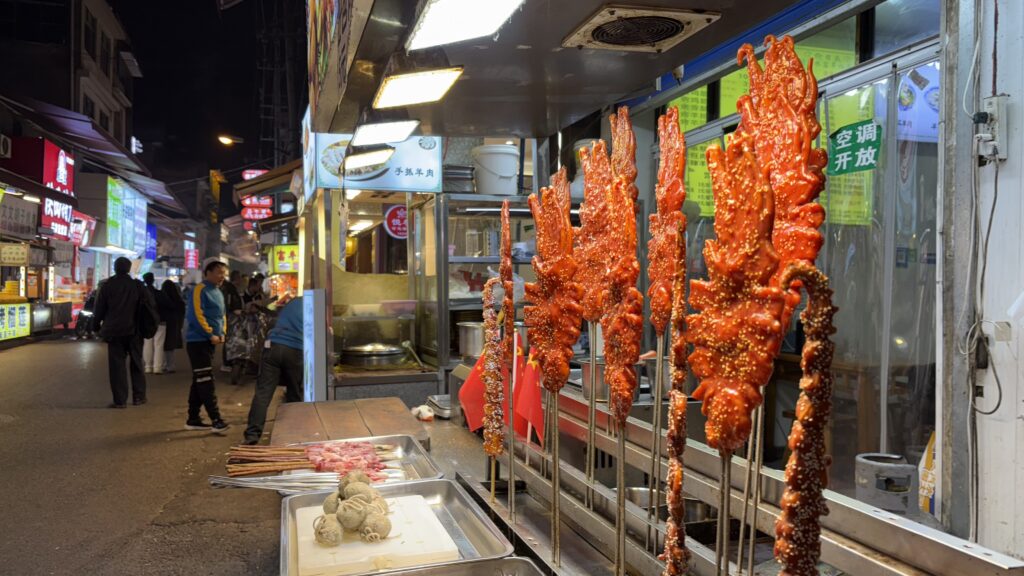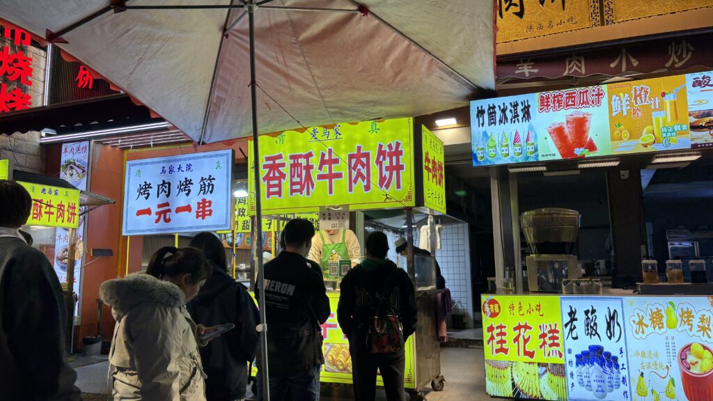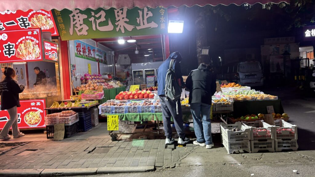 西安到着後は、宿泊先のホテルから徒歩1分の夜市へ皆で繰り出しました。