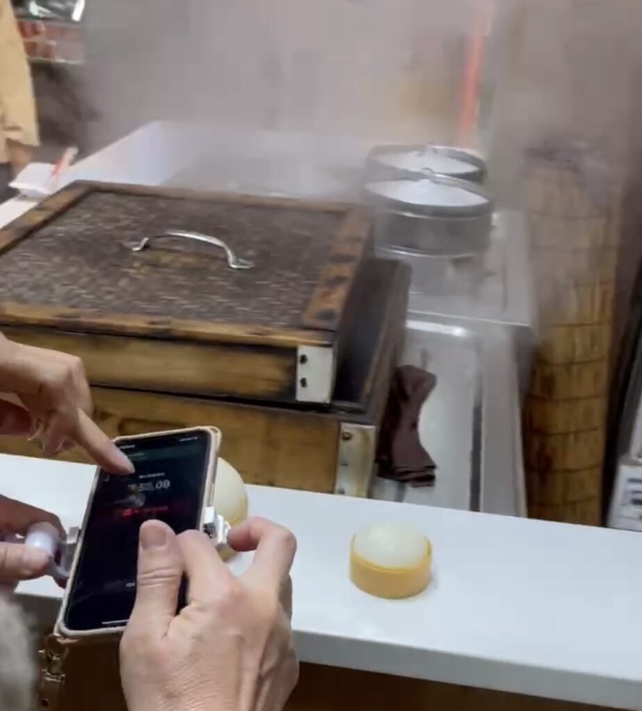 ここで小籠包6個入りを購入して、初のウィチャット支払いをしてみることに😊 支払いもスムーズにできるかな~~~??