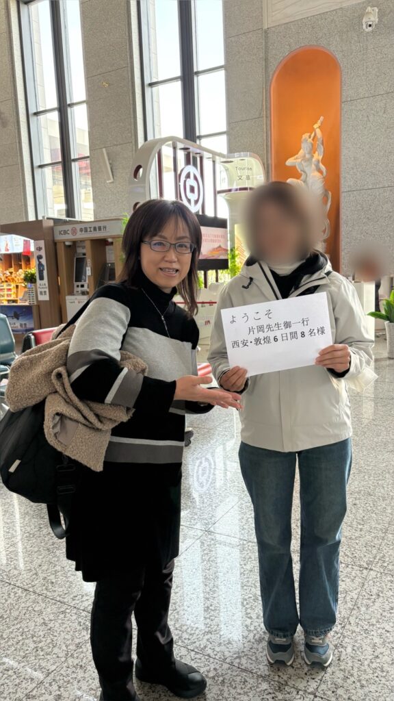 敦煌空港でも、またまた私の名前を表示した現地ガイドの孫さんがお出迎えしてくださいました。