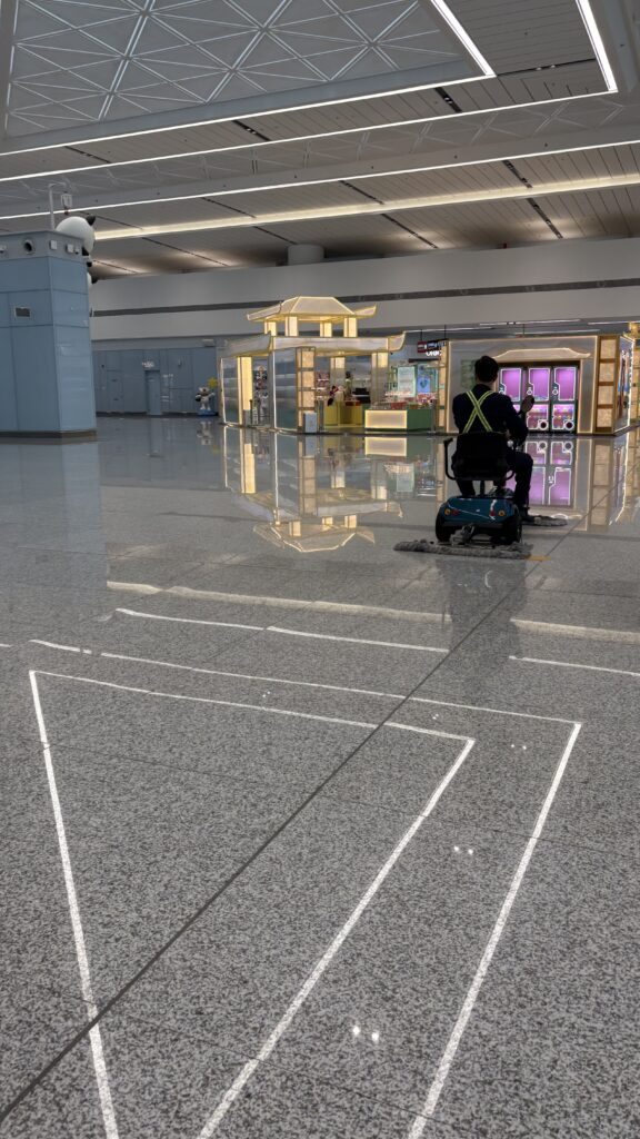 途中、清掃モップのついた乗り物カートが行ったり来たり↓↓ (^^♪ 広い空港内でもこれなら疲れ知らずで良いですね~。