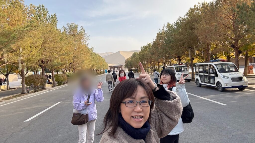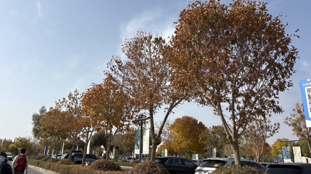 ↓↓そして、ひとたび空港から外へ出ると、陽に照らされた木々が私たちを出迎えてくれました🍁そう!タイミングよく敦煌は丁度紅葉シーズン。