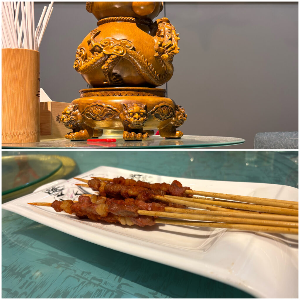 ↑敦煌の食事はどれもおいしくて皆さん一応に「美味しいね~」と初敦煌の食事を楽しみました。この串に刺した羊のシシカバブはとてもおいしくて、おかわりをしたほどでした(^^♪