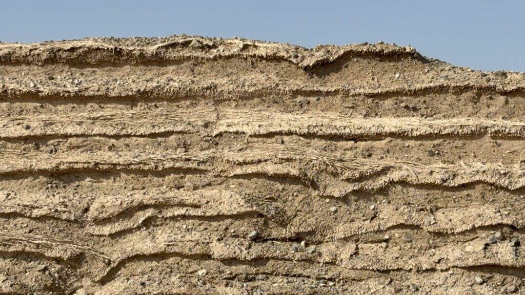 葦は、長城を作るこの辺りにはとても多く自生していて、アルカリ性で地面に強い植物の為使用。