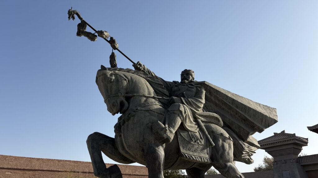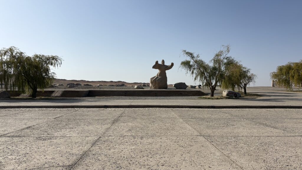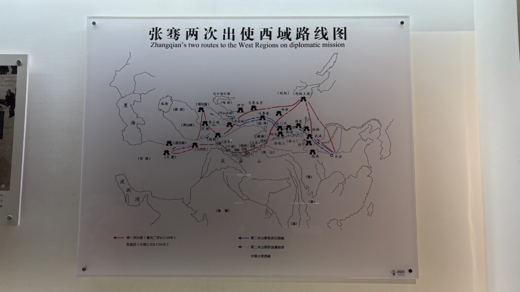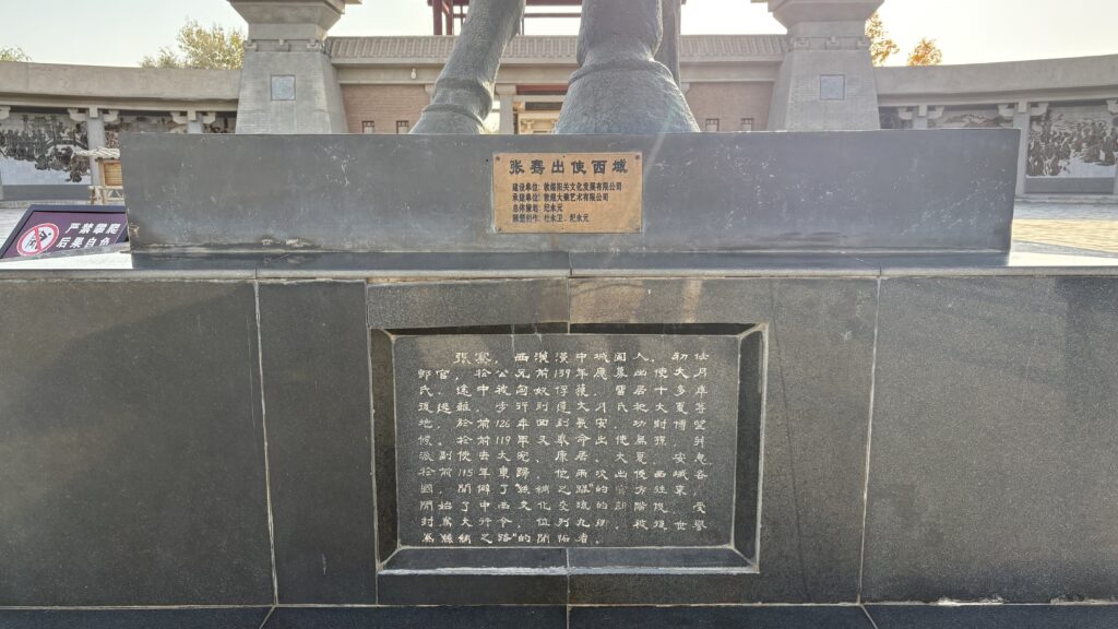 ↓↓館の出入口前には、初めてシルクロードを渡ったという「張騫」(ちょうけん)の銅像もありました。