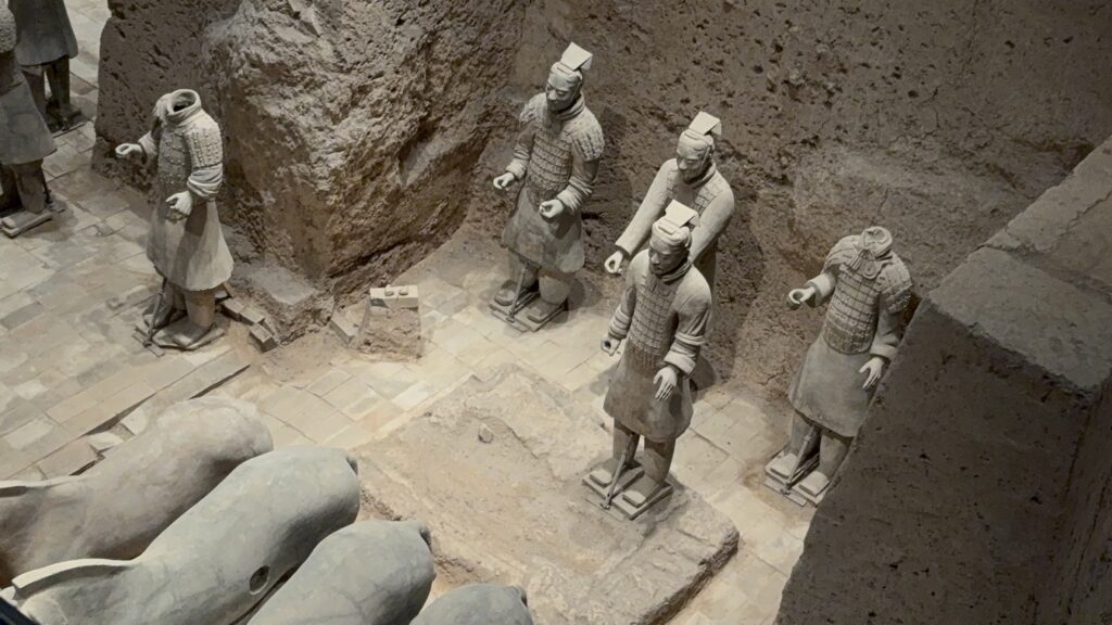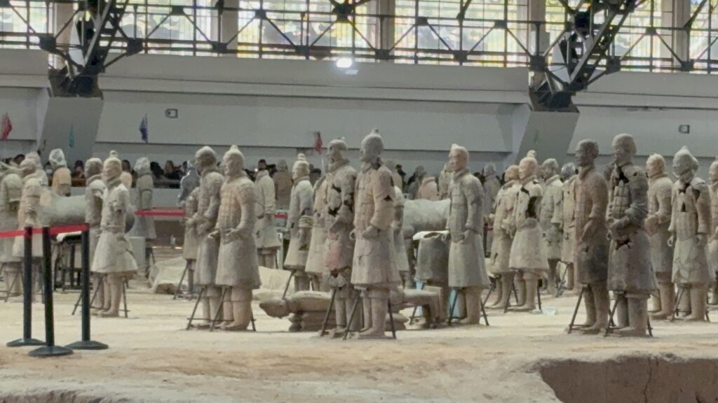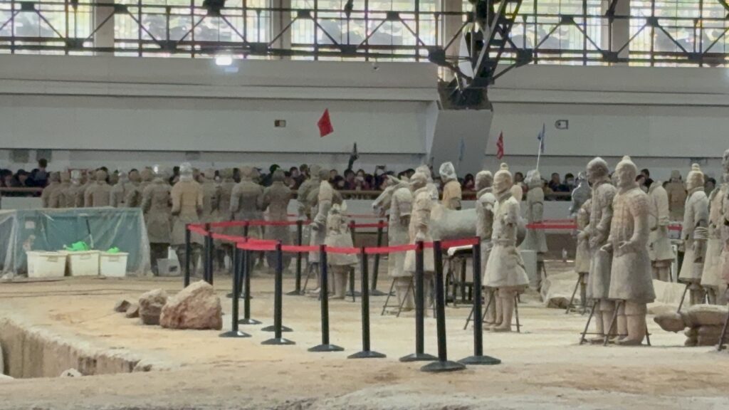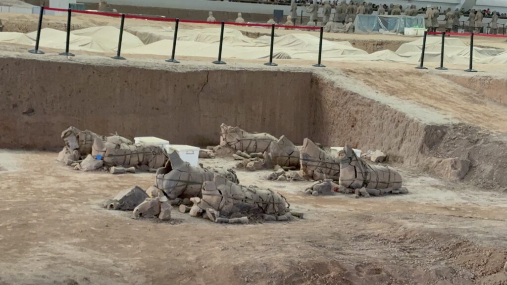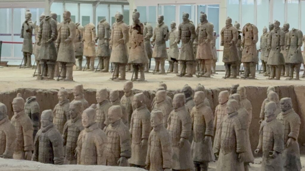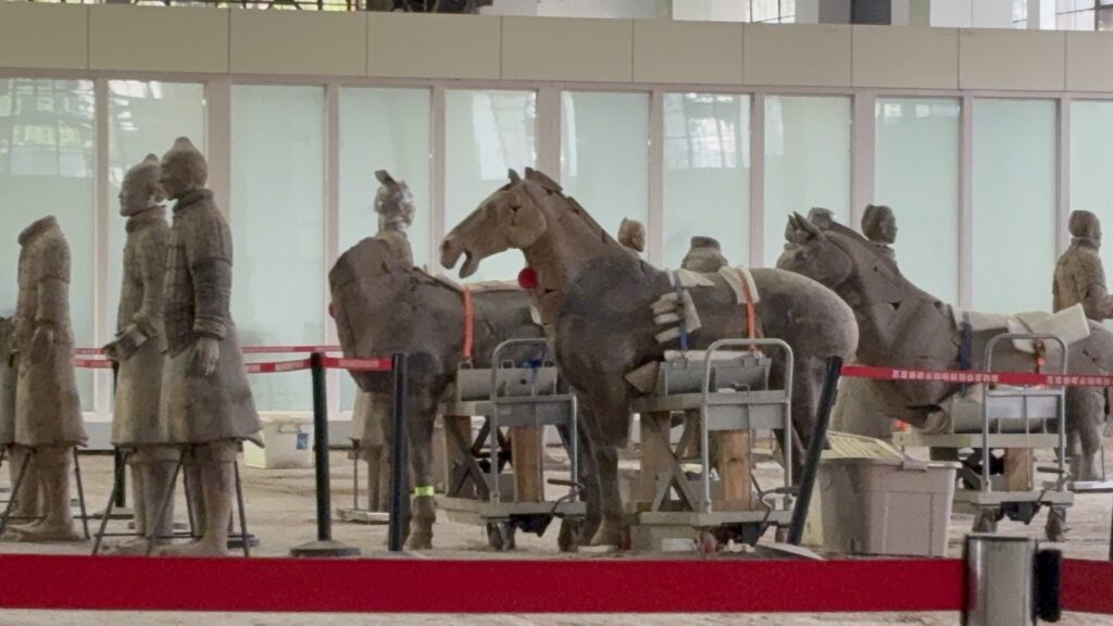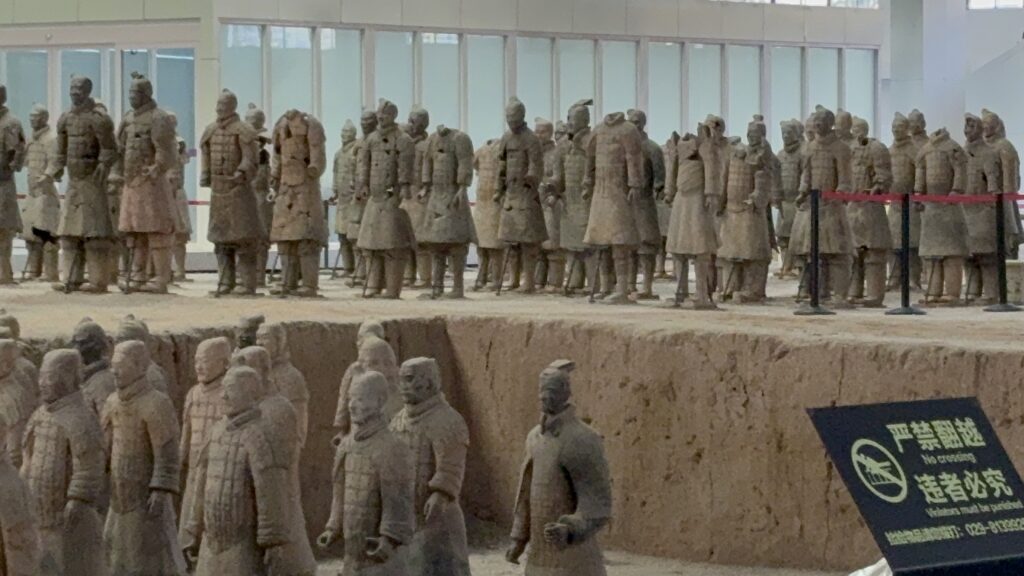 一号抗の「抗」とは「穴」という意味。そして「兵馬俑抗」は軍隊を忠実に再現している配置で全て東を向いて立って守ていることなど、先日放送されていたNHK BSで言っていた。実際に赴いてすぐの放送だったため復習にもなる(*^^*)