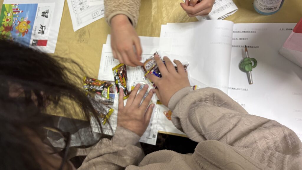 バレンタインデーを前に、チョコやお菓子の掴み取りを実施しました。