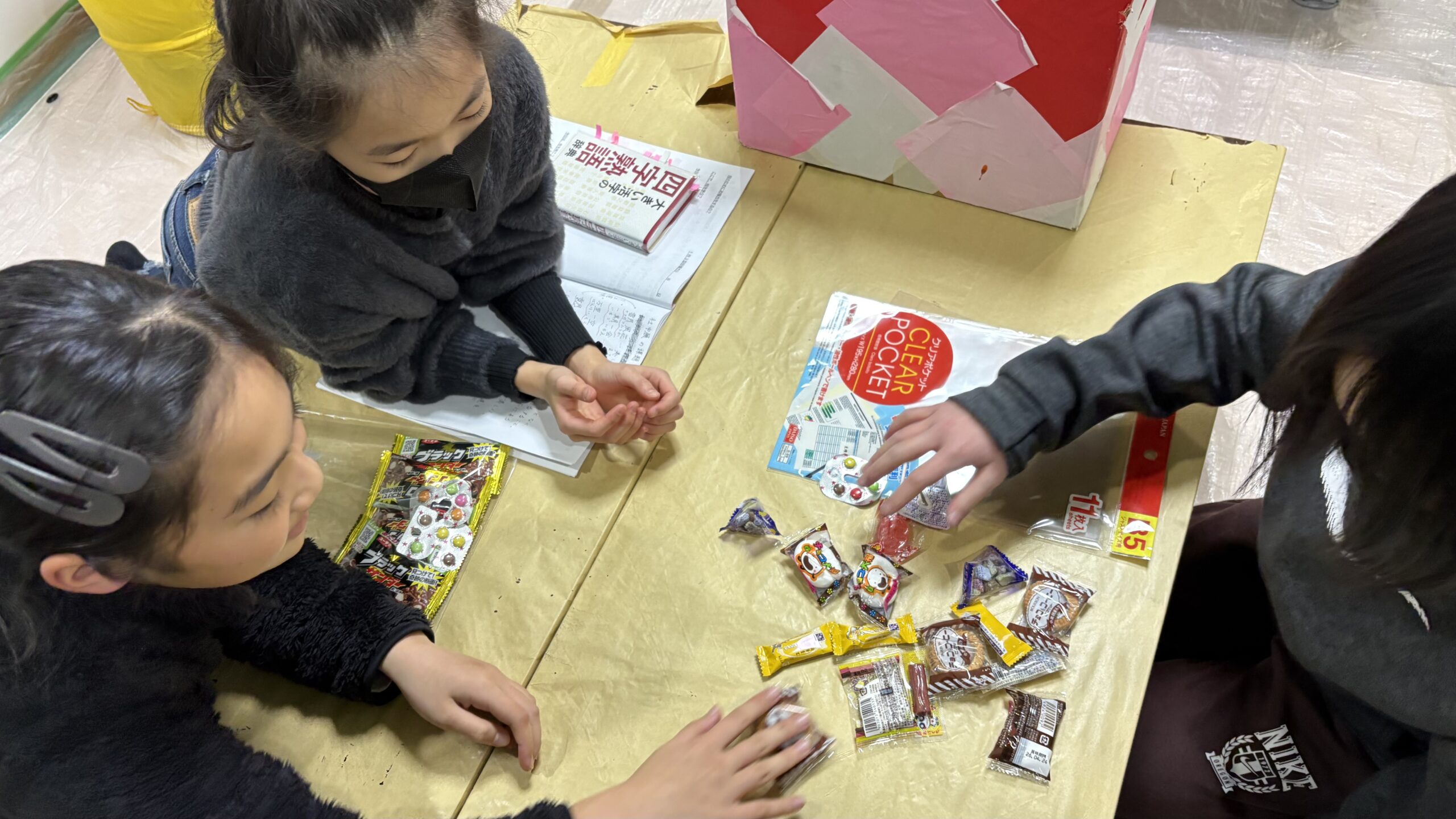 掴み取りの順番もクラスのみんなで決めて、好きなお菓子を寄せ集めてゲット!!(^^♪
