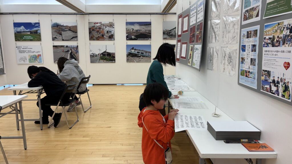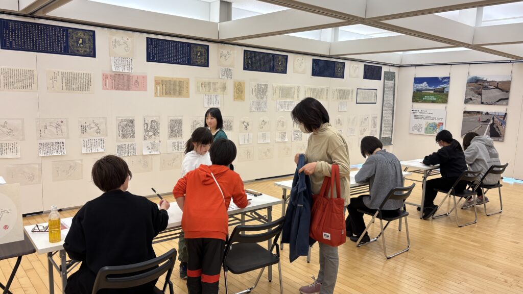 「集い、つながろう!・成田 復興支援Week.2026inもりんぴあ」(会期2月26日~3月11日)が公津の杜コミュニティセンターで開催され、ギャラリー展示参加している片岡書道教室です。