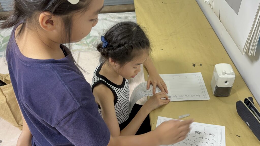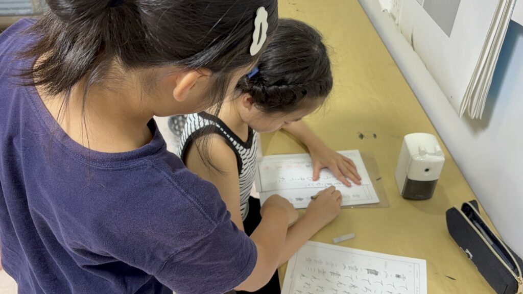 そうすると、書き込み練習をしていた小学5年生のYさんは、Mさんのところへ行きます。