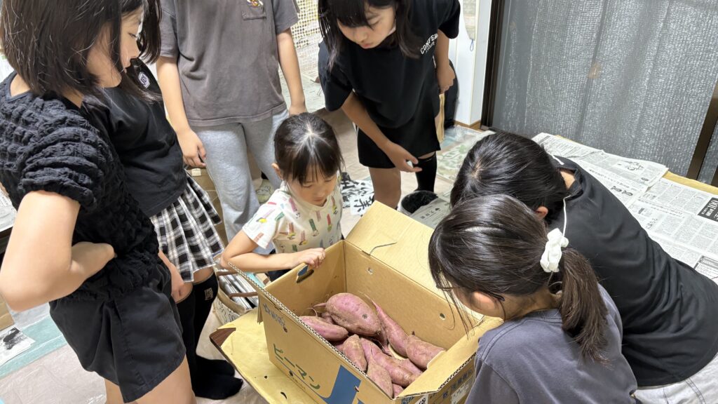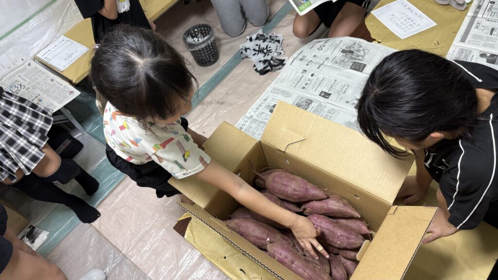 「実家で採れたのでみんなでわけてくださ~~~い!」と段ボールにいっぱい詰め込まれたサツマイモを持ってきてくださいました(#^.^#)